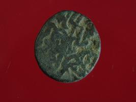 | Description / विवरण | This is a copper coin with coating of silver on it. The depression on obverse side depicts a deity sitting on a horse and holding a spear in his right hand. On reverse side a bull in a sitting position and some inscriptions are written above. Shape is almost circular. Surface is smooth. Appearance is metallic bronze. |