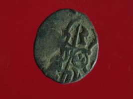 | Description / विवरण | This is a copper coin with coating of silver on it. The depression on obverse side depicts a deity sitting on a horse and holding a spear in his right hand. On reverse side a bull in a sitting position and some inscriptions are written above. Shape is almost circular. Surface is smooth. Appearance is metallic bronze. |