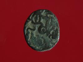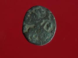 | Description / विवरण | This is a copper coin with coating of silver on it. The depression on obverse side depicts a deity sitting on a horse and holding a spear in his right hand. On reverse side a bull in a sitting position and some inscriptions are written above. Shape is almost circular. Surface is smooth. Appearance is metallic bronze. |