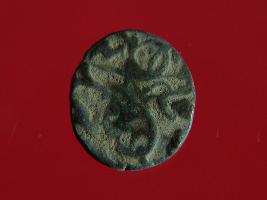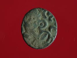| Description / विवरण | This is a copper coin with coating of silver on it. The depression on obverse side depicts a deity sitting on a horse and holding a spear in his right hand. On reverse side a bull in a sitting position and some inscriptions are written above. Shape is almost circular. Surface is smooth. Appearance is metallic bronze. |