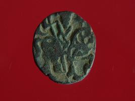| Description / विवरण | This is a copper coin with coating of silver on it. The depression on obverse side depicts a deity sitting on a horse and holding a spear in his right hand. On reverse side a bull in a sitting position and some inscriptions are written above. Shape is almost circular. Surface is smooth. Appearance is metallic bronze. |