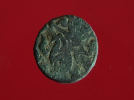 | Description / विवरण | This is a copper coin with coating of silver on it. The depression on obverse side depicts a deity sitting on a horse and holding a spear in his right hand. On reverse side a bull in a sitting position and some inscriptions are written above. Shape is almost circular. Surface is smooth. Appearance is metallic bronze. |
