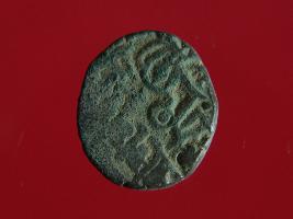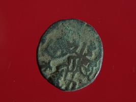 | Description / विवरण | This is a copper coin with coating of silver on it. The depression on obverse side depicts a deity sitting on a horse and holding a spear in his right hand. On reverse side a bull in a sitting position and some inscriptions are written above. Shape is almost circular. Surface is smooth. Appearance is metallic bronze. |