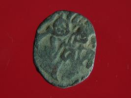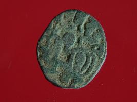 | Description / विवरण | This is a copper coin with coating of silver on it. The depression on obverse side depicts a deity sitting on a horse and holding a spear in his right hand. On reverse side a bull in a sitting position and some inscriptions are written above. Shape is almost circular. Surface is smooth. Appearance is metallic bronze. |