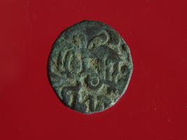 | Description / विवरण | This is a copper coin with coating of silver on it. The depression on obverse side depicts a deity sitting on a horse and holding a spear in his right hand. On reverse side a bull in a sitting position and some inscriptions are written above. Shape is almost circular. Surface is smooth. Appearance is metallic bronze. |