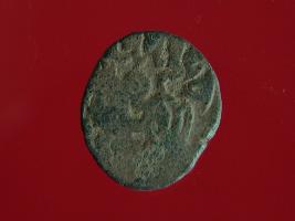 | Description / विवरण | This is a copper coin with coating of silver on it. The depression on obverse side depicts a deity sitting on a horse and holding a spear in his right hand. On reverse side a bull in a sitting position and some inscriptions are written above. Shape is almost circular. Surface is smooth. Appearance is metallic bronze. |