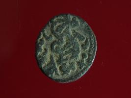 | Description / विवरण | This is a copper coin with coating of silver on it. The depression on obverse side depicts a deity sitting on a horse and holding a spear in his right hand. On reverse side a bull in a sitting position. Shape is almost circular. Surface is smooth. Appearance is metallic bronze. |