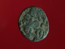 | Description / विवरण | This is a copper coin with coating of silver on it. The depression on obverse side depicts deity sitting on a horse and holding a spear in his right hand. On reverse side a bull in a sitting position. Shape is almost circular. Surface is smooth. Appearance is metallic bronze. |