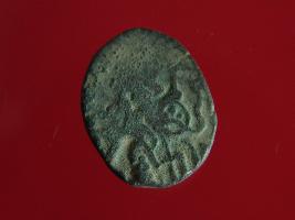 | Description / विवरण | This is a copper coin. The depression on obverse side depicts a deity sitting on a horse and holding a trident in his right hand. On reverse side a bull in a standing position. Shape is almost circular. Surface is smooth. Appearance is metallic bronze. Hard patina deposited on it. |