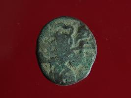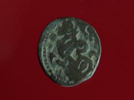 | Description / विवरण | This is a copper coin with coating of silver on it. The depression on obverse side depicts a deity sitting on a horse and holding a spear in his right hand. On reverse side a bull in a standing position. Shape is almost circular. Surface is smooth. Appearance is metallic bronze. |