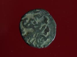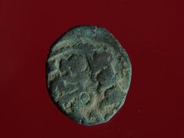| Description / विवरण | This is a copper coin with silver coating on it. The depression on obverse side depicts a deity sitting on a horse and holding a spear in his right hand. On reverse side a bull in a standing position. Shape is almost circular. Surface is smooth. Appearance is metallic bronze. |