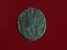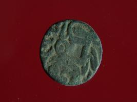 | Description / विवरण | This is a copper coin with coating of silver on it. The depression on obverse side depicts a deity sitting on a horse and holding a spear in his right hand. On reverse side a bull in a sitting position. Shape is almost circular. Surface is smooth. Appearance is metallic bronze. |
