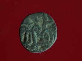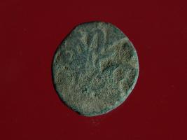 | Description / विवरण | This is a copper coin with silver coating on it. The depression on obverse side depicts a deity sitting on a horse and holding a spear in his right hand. On reverse side a bull in a standing position. Shape is almost circular. Surface is smooth. Appearance is metallic bronze. |