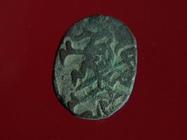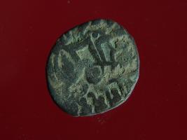 | Description / विवरण | This is a copper coin with silver coating on it. The depression on obverse side depicts a deity sitting on a horse and holding a spear in his right hand. On reverse side a bull in a sitting position. Shape is almost circular. Surface is smooth. Appearance is metallic bronze. |