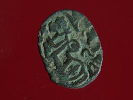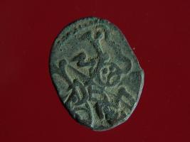 | Description / विवरण | This is a copper coin with silver coating on it. The depression on obverse side depicts a deity sitting on a horse and holding a spear in his right hand. On reverse side a bull in a sitting position. Shape is almost circular. Surface is smooth. Appearance is metallic bronze. |