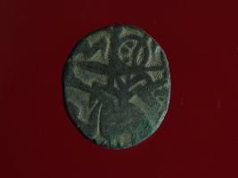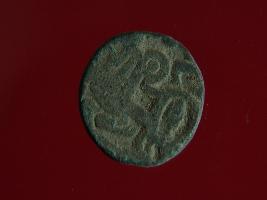 | Description / विवरण | This is a copper coin with silver coating on it. The depression on obverse side depicts a deity sitting on a horse and holding a spear in his right hand. On reverse side a bull in a sitting position. Shape is almost circular. Surface is smooth. Appearance is metallic bronze. |