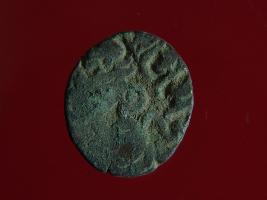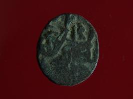 | Description / विवरण | This is a copper coin with coating of silver on it. The depression on obverse side depicts a deity sitting on a horse and holding a spear in his right hand. On reverse side a bull in a sitting position. Shape is almost circular. Surface is smooth. Appearance is metallic bronze. |