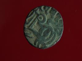| Description / विवरण | This is a copper coin with coating of silver on it. The depression on obverse side depicts deity sitting on a horse and holding a spear in his right hand. On reverse side a bull in a sitting position. Shape is almost circular. Surface is smooth. Appearance is metallic bronze. Hard patina deposited on it. |