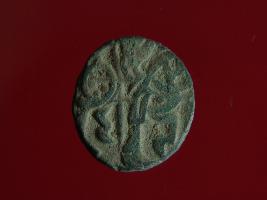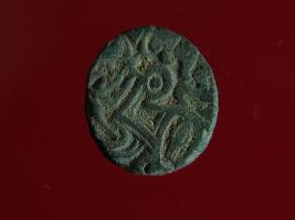 | Description / विवरण | This is a copper coin with coating of silver on it. The depression on obverse side depicts deity sitting on a horse and holding a spear in his right hand. On reverse side a bull in a sitting position. Shape is almost circular. Surface is smooth. Appearance is metallic bronze. Hard patina deposited on it. |