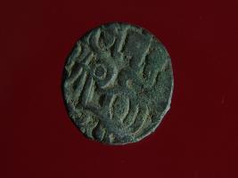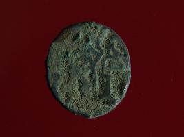 | Description / विवरण | This is a copper coin with coating of silver on it. The depression on obverse side depicts a deity sitting on a horse and holding a spear in his right hand. On reverse side a bull in a sitting position. Shape is almost circular. Surface is smooth. Appearance is metallic bronze. Hard patina deposited on it. |