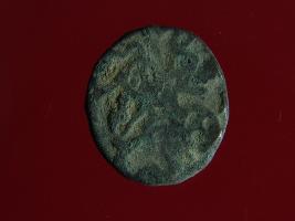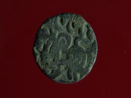| Description / विवरण | This is a copper coin with coating of silver on it. The depression on obverse side depicts a deity sitting on a horse and holding a spear in his right hand. On reverse side a bull in a sitting position. Shape is almost circular. Surface is smooth. Appearance is metallic bronze. |