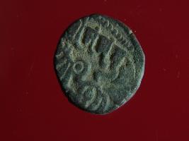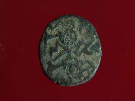 | Description / विवरण | This is a copper coin with coating of silver on it. The depression on obverse side depicts a deity sitting on a horse and holding a spear in his right hand. On reverse side a bull in a sitting position. Shape is almost circular. Surface is smooth. Appearance is metallic bronze. Hard patina deposited on it. |