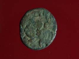 | Description / विवरण | This is a copper coin with silver coating. The depression on obverse side depicts deity sitting on a horse and holding a spear in his right hand. On reverse side a bull in a sitting position. Shape is almost circular. Surface is smooth. Appearance is metallic bronze. |