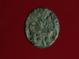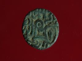| Description / विवरण | This is a copper coin with silver coating. The depression on obverse side depicts deity sitting on a horse and holding a spear in his right hand. On reverse side a bull in a sitting position. Shape is almost circular. Surface is smooth. Appearance is metallic bronze. |
