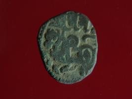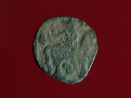 | Description / विवरण | This is a copper coin with silver coating. The depression on obverse side depicts deity sitting on a horse and holding a spear in his right hand. On reverse side a bull in a sitting position. Shape is almost circular. Surface is smooth. Appearance is metallic bronze. |