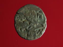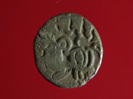 | Description / विवरण | This is a copper coin with silver coating. The depression on obverse side depicts deity sitting on a horse and holding a trident in his right hand. On reverse side a bull in a standing position. Shape is almost circular. Surface is smooth. Appearance is metallic bronze. |