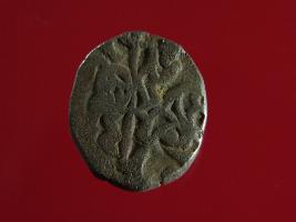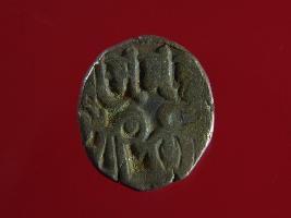 | Description / विवरण | This is a copper coin with silver coating. The depression on obverse side depicts deity sitting on a horse and holding a spear in his right hand. On reverse side a bull in a sitting position. Shape is almost circular. Surface is smooth. Appearance is metallic bronze. |
