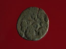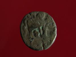 | Description / विवरण | This is a copper coin with silver coating. The depression on obverse side depicts deity sitting on a horse and holding a trident in his right hand. On reverse side a bull in a standing position. Shape is almost circular. Surface is smooth. Appearance is metallic bronze. |