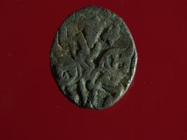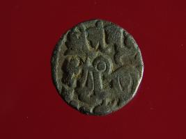 | Description / विवरण | This is a copper coin with silver coating. The depression on obverse side depicts deity sitting on a horse and holding a spear in his right hand. On reverse side a bull in a sitting position. Shape is almost circular. Surface is smooth. Appearance is metallic bronze. |