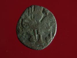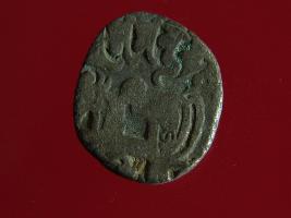| Description / विवरण | This is a copper coin with silver coating. The depression on obverse side depicts deity sitting on a horse and holding a spear in his right hand. On reverse side a bull in a sitting position. Shape is almost circular. Surface is smooth. Appearance is metallic bronze. |
