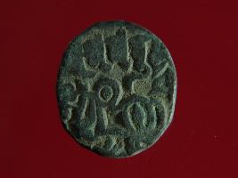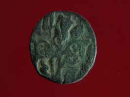 | Description / विवरण | This is a copper coin. The depression on obverse side depicts a deity sitting on a horse and holding a spear in his right hand and on reverse side a bull in a sitting position. Shape is circular. Surface is smooth. Appearance is metallic bronze. Hard patina deposited on it. |