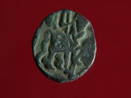 | Description / विवरण | This is a copper coin. The depression on obverse side depicts a deity sitting on a horse and holding a spear in his right hand and on reverse side a bull in a sitting position. Shape is circular. Surface is smooth. Appearance is metallic bronze. Hard patina deposited on it. |