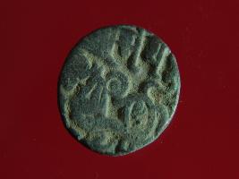 | Description / विवरण | This is a copper coin. The depression on obverse side depicts a deity sitting on a horse and holding a spear in his right hand and on reverse side a bull in a sitting position. Shape is circular. Surface is smooth. Appearance is metallic bronze. Hard patina deposited on it. |