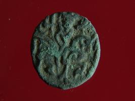 | Description / विवरण | This is a copper coin with silver coating. The depression on obverse side depicts deity sitting on a horse and holding a spear in his right hand. On reverse side a bull in a sitting position. Shape is almost circular. Surface is smooth. Appearance is metallic bronze. |