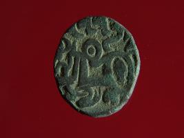 | Description / विवरण | This is a copper coin. The depression on obverse side depicts deity sitting on a horse and holding a trident in his right hand. On reverse side a bull in a standing position. Shape is almost circular. Surface is smooth. Appearance is metallic bronze. |