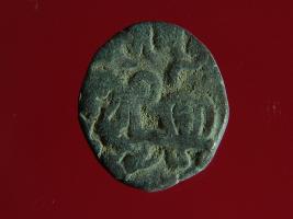 | Description / विवरण | This is a copper coin. The depression on obverse side depicts deity sitting on a horse and holding a trident in his right hand. On reverse side a bull in a standing position. Shape is almost circular. Surface is smooth. Appearance is metallic bronze. |