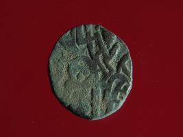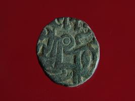 | Description / विवरण | This is a copper coin. The depression on obverse side depicts deity sitting on a horse and holding a trident in his right hand. On reverse side a bull in a standing position. Shape is almost circular. Surface is smooth. Appearance is metallic bronze. |