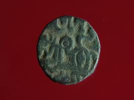 | Description / विवरण | This is a copper coin. The depression on obverse side depicts a deity sitting on a horse and holding a spear in his right hand. On reverse side a bull in a sitting position. Shape is circular. Surface is smooth. Appearance is metallic bronze. Hard patina deposited on it. |
