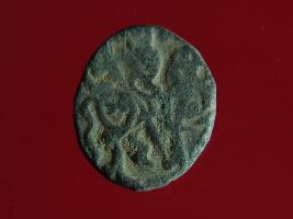 | Description / विवरण | This is a copper coin. The depression on obverse side depicts deity sitting on a horse and holding a spear in his right hand. On reverse side a bull in a sitting position. Shape is almost circular. Surface is smooth. Appearance is metallic bronze. |