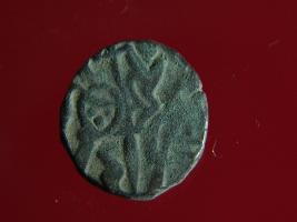 | Description / विवरण | This is a copper coin. The depression on obverse side depicts deity sitting on a horse and holding a trident in his right hand. On reverse side a bull in a standing position. Shape is almost circular. Surface is smooth. Appearance is metallic bronze. |