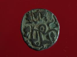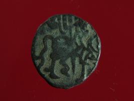 | Description / विवरण | This is a copper coin. The depression on obverse side depicts deity sitting on a horse and holding a spear in his right hand. On reverse side a bull in a sitting position. Shape is almost circular. Surface is smooth. Appearance is metallic bronze. |