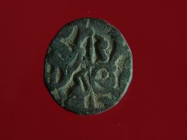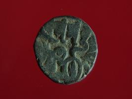 | Description / विवरण | This is a copper coin with silver coating. The depression on obverse side depicts deity sitting on a horse and holding a spear in his right hand. On reverse side a bull in a sitting position. Shape is almost circular. Surface is smooth. Appearance is metallic bronze. |