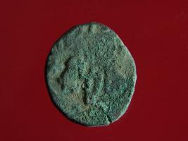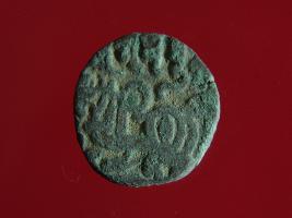 | Description / विवरण | This is a copper coin with silver coating. The depression on obverse side depicts deity sitting on a horse and holding a trident in his right hand. On reverse side a bull in a standing position. Shape is almost circular. Surface is smooth. Appearance is metallic bronze. |
