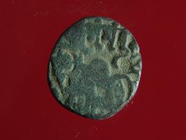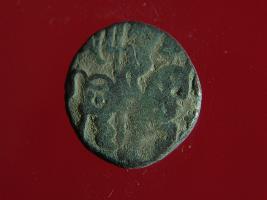 | Description / विवरण | This is a copper coin with silver coating. The depression on obverse side depicts deity sitting on a horse and holding a spear in his right hand. On reverse side a bull in a sitting position. Shape is almost circular. Surface is smooth. Appearance is metallic bronze. |