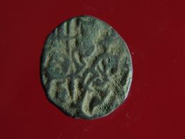 | Description / विवरण | This is a copper coin. The depression on obverse side depicts deity sitting on a horse and holding a spear in his right hand. On reverse side a bull in a sitting position. Shape is almost circular. Surface is smooth. Appearance is metallic bronze. |