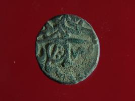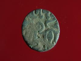 | Description / विवरण | This is a copper coin. The depression on obverse side depicts deity sitting on a horse and holding a spear in his right hand. On reverse side a bull in a sitting position. Shape is almost circular. Surface is smooth. Appearance is metallic bronze. |